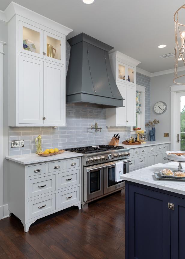 White Cabinets with Charcoal Gray Kitchen Island ... from cdn.decorpad.com