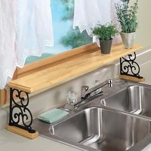 Rated 4 out of 5 by pennyjo from organization at my sink lots of room for things needed at my kitchen sink. It just adds that little something something to the utilitarian look of a kitchen sink that makes it more homey. Over the sink dish drying rack adjustable kitchen large standing organizer dish. The over the sink wood sponge holder is a wonderful addition to your kitchen. Hang one across your window if it fits, and above it if credit: Over The Kitchen Sink Shelf